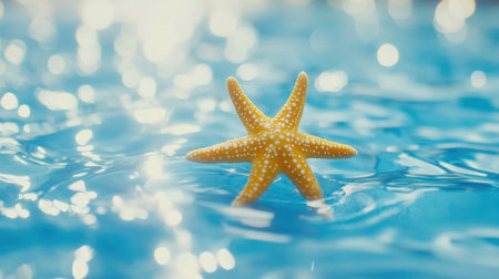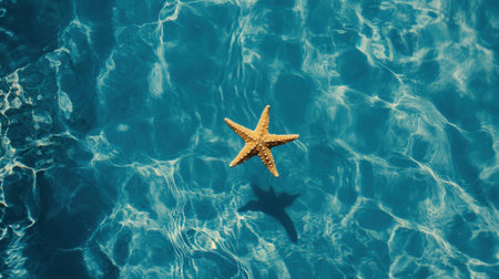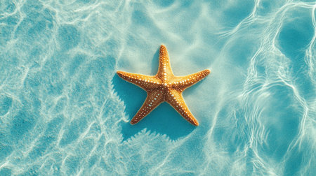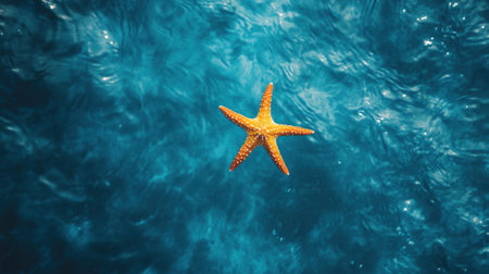 A stunning starfish floats gracefully on tranquil turquoise water, capturing the essence of summer serenity and vibrant marine life, perfect for nature and beach lovers.
