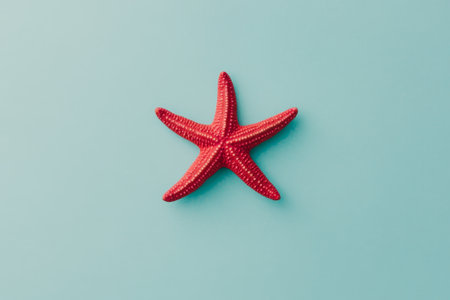 A vibrant red starfish lies peacefully on a serene light blue backdrop, showcasing its intricate texture and natural elegance.