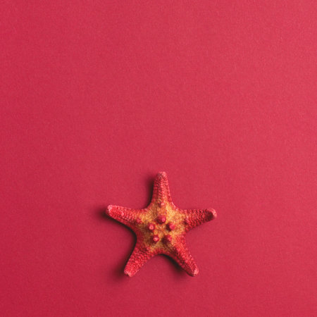 Square red minimalist background with starfish and blank space for text.