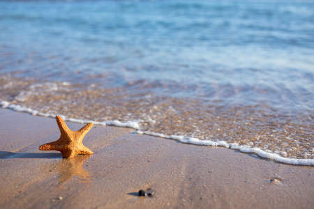 Starfish on the beach. Summer vacation concept. Close up.