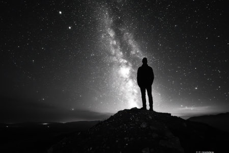 Under the vast expanse of the Milky Way, a solitary figure contemplates the boundless wonders of the universe.