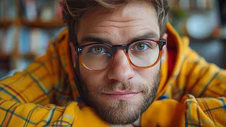 Close-up portrait of a man with glasses. Men's beauty, fashion.