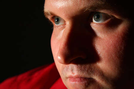 Portrait of a Pensive Man in Low Light Capturing Intense Emotions.