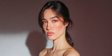 Beauty face portrait of a young woman, natural makeup look, skincare and cosmetics