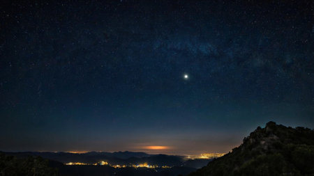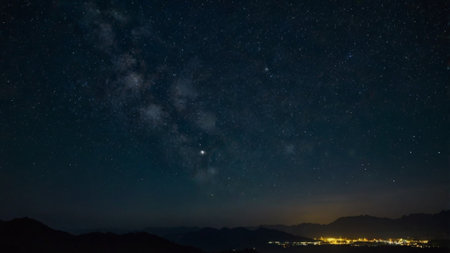 Night sky with stars and milky way over the mountains.