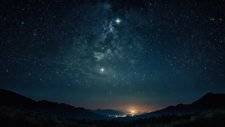 AI Generated. Describe the beauty of a starry night sky, where the darkness serves as a backdrop for the twinkling stars