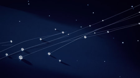 An artistic design featuring delicate diamonds connected by strings against a dark blue background, creating a mesmerizing celestial effect. Perfect for luxury and elegance themes.