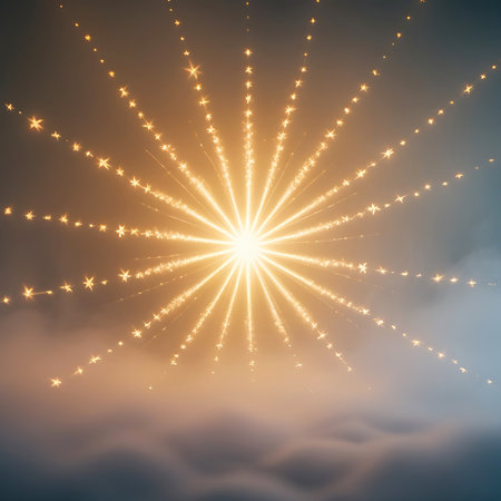 Captivating light burst creating a magical atmosphere with shimmering sparkles against a dark background, perfect for fantasy and abstract themes.