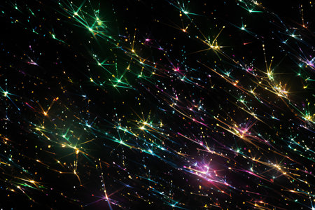 This captivating abstract image features dynamic light rays and sparkling particles in a dark space, creating an enchanting atmosphere perfect for creative projects.