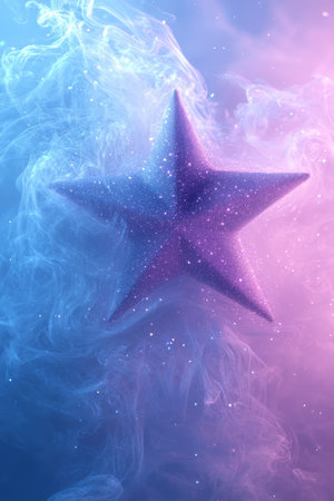 A sparkling star is set against a dreamy background of swirling blue and pink clouds, creating a captivating visual effect that evokes a sense of wonder and creativity.