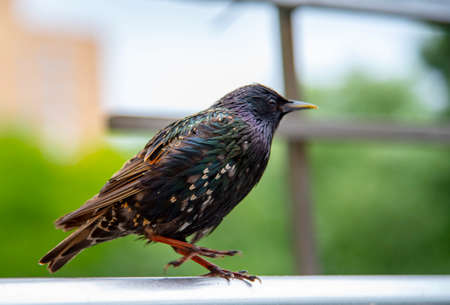 An ordinary starling. Bird in the tribal beautiful plumage.