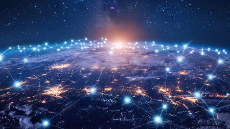 Global digital Network Telecommunication network above Earth viewed from space with connected system