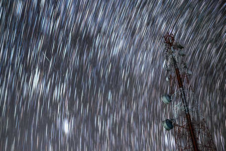 star trails with meteor shower with long exposure in the night sky can be used as background