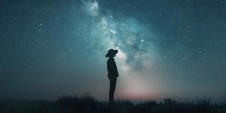 Silhouette of a man looking at milky way in the night sky