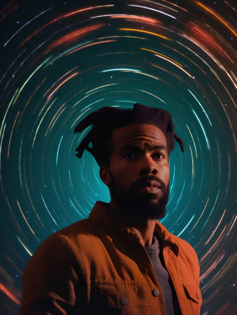 Abstract Portrait of Man with Artistic Light Effects and Motion Blur.