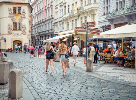 PRAGUE, CZECH REPUBLIC - AUGUST 18, 2015: streets of Prague. Prague is the capital and largest city of the Czech Republic. It is the 15th largest city in the European Union.