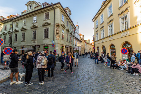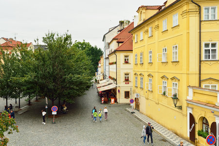 Prague, Czech Republic, September 30, 2017: Old and colorful streets in the old town of Prague, Czech Republic
