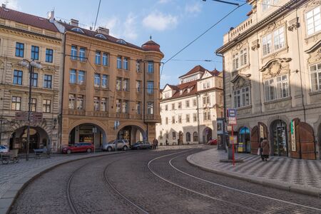 Prague, Czech Republic- February 18, 2018: People are walking on the street near Prague Old Town, Czech Republic