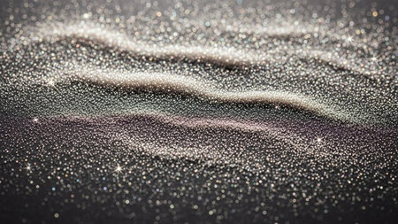Macro view of shimmering glitter particles forming wavy patterns with bright sparkles.