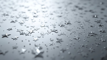 This stunning close-up image showcases silver star glitter scattered gracefully across a soft gradient background, perfect for creating a festive and elegant design.