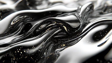 Generative AI Image of Black Water Fluid Liquid Flowing with Glitter