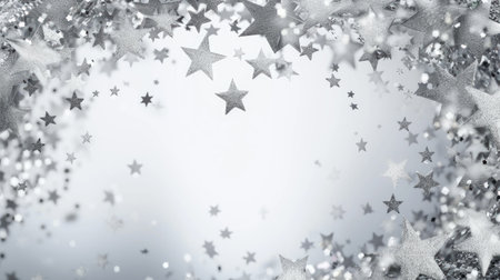 A silver stars confetti frame adorns a banner, creating a shimmering and glamorous scene with plenty of copy space.