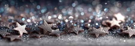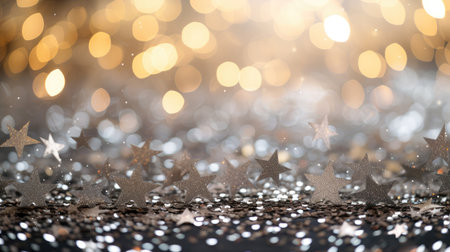 Glittering stars scattered on a sparkling surface, creating a magical festive atmosphere