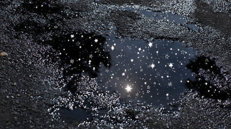 Stars in the night sky reflected in a puddle of water.