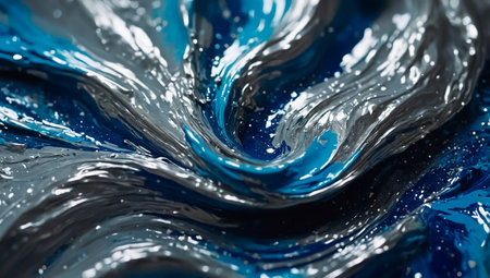Swirling Black and Blue Liquid with a Glossy, Abstract Texture and Light Reflections. High quality photo