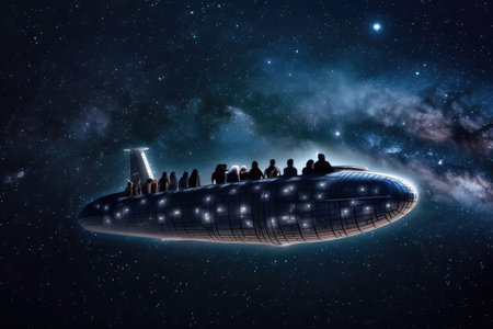 Spaceship in space with copy space.