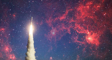 Spaceship takes off into the starry sky. Launch of Space. Elements of this image furnished