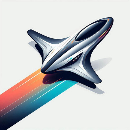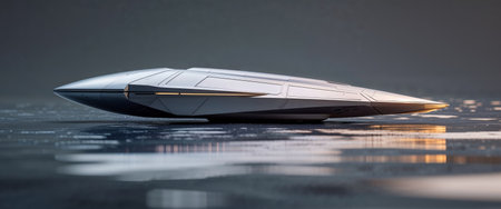 AI Generated. A futuristic spacecraft resting on a reflective and blurred surface