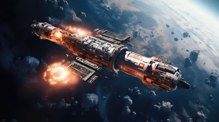 Spaceship in space. science fiction art. AI generated