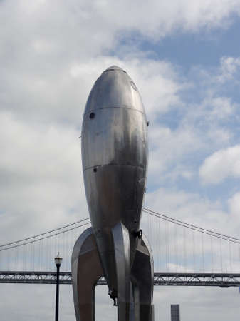San Francisco - June 23, 2011: 40-foot Raygun Gothic Rocketship sculpture that adorns the San Francisco waterfront at the city's Pier 14