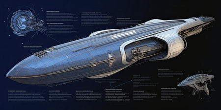 Futuristic spaceship blueprint. Generative AI