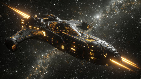 technology cybernetic space vehicle fantastic spaceship in deep space, generative ai