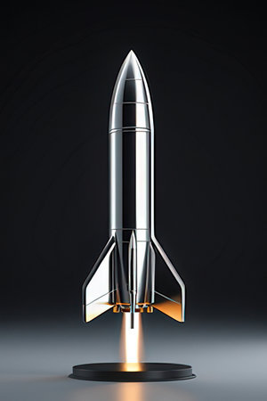 Rocket on a dark background. 3d rendering, 3d illustration.