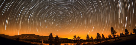 aa movement of stars in the night sky with the view of mountains.