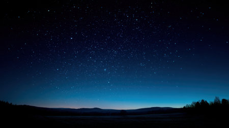 Stunning Night Sky with Twinkling Stars Above a Serene Landscape at Dusk, Capturing the Beauty of the Universe in a Peaceful Setting