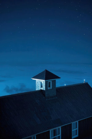 Roof of a house at night with stars in the sky.
