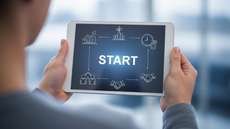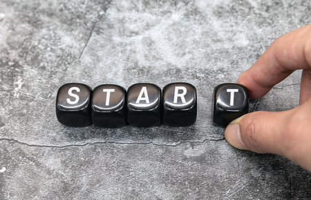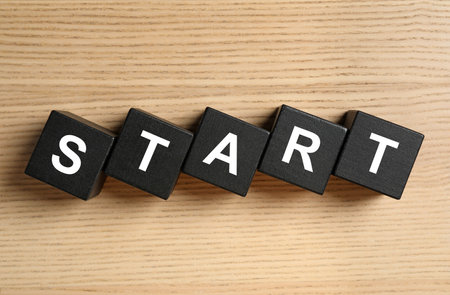 Wooden blocks with word START. Start up, new career or new business, start to success or mindset concept. trend, idea, strategy, business start up, online marketing, goal and target plan