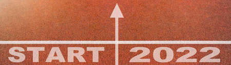 New year resolution 2025 concept, Word start 2025 written on athletics track preparing for new year for challenge and change, Planning and the goal to success, Beginning of new season.
