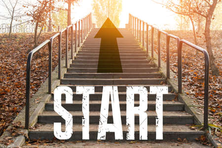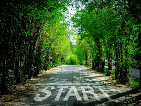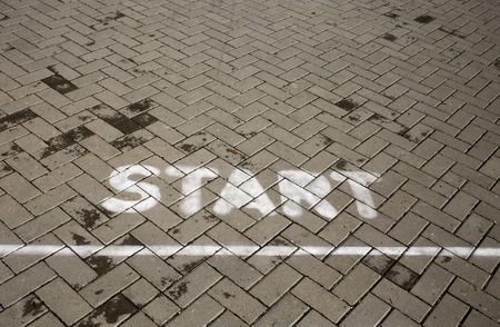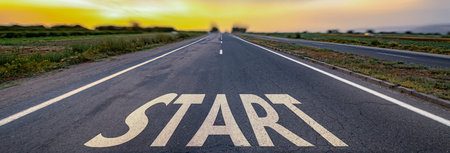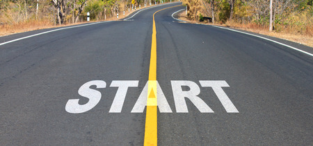 Start word as motivation writen on asphalt road