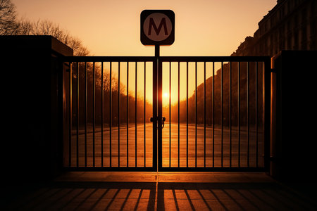 Sunset Silhouette: An Enchanting Castle Entrance with a Forged Old Gate