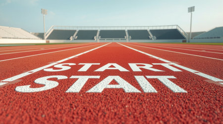 Running track Start line, New beginnings, Motivation, Business goals and Growth Mindset for Success