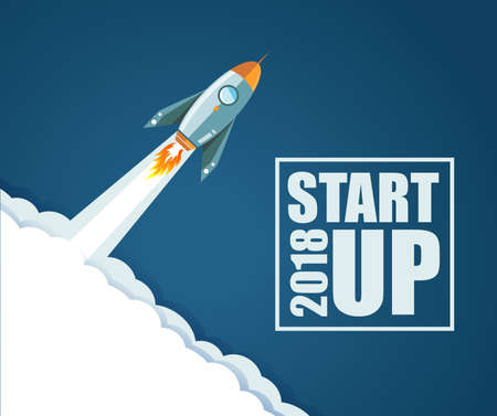 2018 Start up rocket concept. illustration design over a blue background