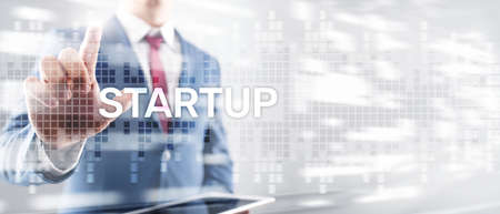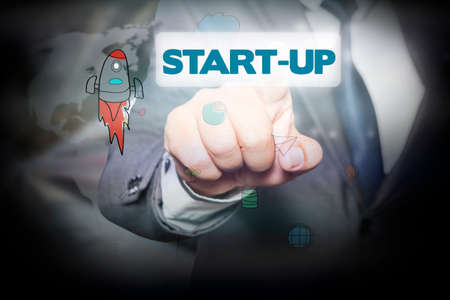 Hand pressing Start-Up on virtual screen. business concept.