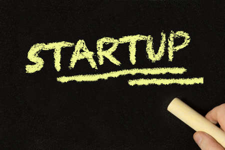A chalkboard and the word startup