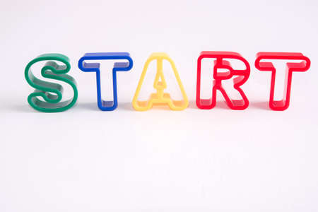 plastic alphabet on white background with word start