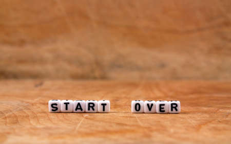 The word start on cubes with a male hand pressing the start button. To make a new start in life, business, education or career concept.